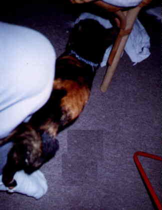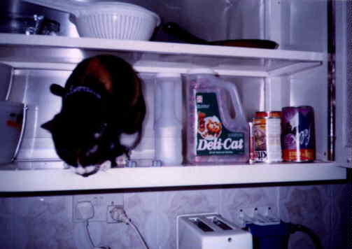 The second reason is that I can get into more trouble than any two normal cats. I don't let my bad leg stop me either. No way. If I have to go explore somthing, I do so, even if it means a big "bang" when I drag that leg during a jump.