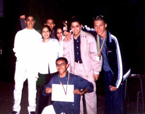Here are some members of the tournament-winning team: Mohammad Fakhral-Deen, Mustafa Malaki, Nada Abduljader, Nouf al Fraih, Nabil al Khaled, Saad al Ghawas, and Ghazi al Sharhan(kneeling); Not pictured: Besma Mutawa, Mais Sartawi, Maryem al Hamad, Hessa al Malallah, Adel al Omar, and Shadi al Suwayeh