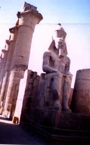 The Middle Kingdom emerged when the local princes of Thebes suceeded in reuniting the country. Pretensions aside, their rule only lasted through two dynasties, or a little over 200 years. The foreign invaders, the Hyksos, overwhelmed the country and ruled as pharoahs. The New Kingdom spawned a thousand novels. The long-lived 18th dynasty spawned a veritable cast of characters. These included Hatshepsut, who ruled as "regent" for her stepson but actually ruled as pharoah, Amenhotep, the religious heretic, and Tutankhamun, "King Tut," who died as a teenager through assassination. Perhaps because they lived so long, the 19th dynasty became genetically defective and had elongated heads. Their sucessors, the 19th dynasy, included the Ramses line and built a world empire, fought with the Hittites, and "Let Moses's people go." Under Ramses II, the pharoahs built another capital closer to the center of their truly Middle Eastern empire in the Delta. Thebes declined, yet still Herodotus called it "The City of 1000 Gates," and Karnak remained a major temple almost until the Christian era.