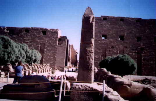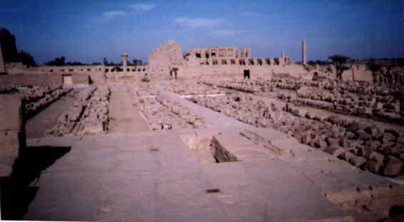 The key to understanding the construction of Karnak lies in forgetting all logic. Each pharoah added a new addition to the temple, each designed to distact visitors from previous contributions. At least once, a pharoah totally changed the orientation of the entire complex. As a result, the complex emerges as an architectural accumulation, not a single, planned work, rather like some cathedrals of the Middle Ages. Still, Karnak doe hold three basic temples, that of Amun, the father, Monthu, the mother, and Khonsu, the child. Since the father has the prominence, almost all of the additional building adds to that cental temple.