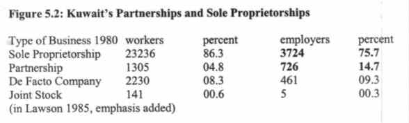 It did, indeed, seem meaningless for a Kuwaiti citizen to work...when he could start a private business and employ foreigners at a low cost, especially since many expatriate businessmen, eager to gain a foothold in the Kuwaiti market, were willing to enter into a business partnership with the nationals. (p. 196)