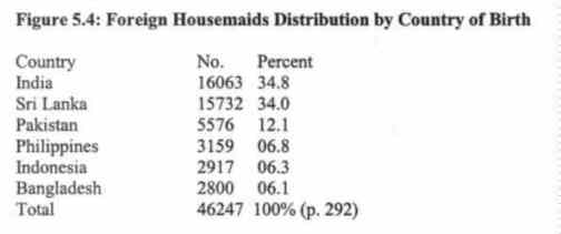 The most feared force of foreign pollution, ironically, came from the most docile members of the foreign community, the maids. Whereas the poorest workers came from Bangladesh, recruiters purposely brought maids from different countries than the male workers to prevent settlement. This analysis will use the term "maids," but the maids generally worked as nannies when their employers’ household held children. They came from the following countries (Abdulmalek, Al-Aamriti, El Hilu, Kamel, & Mousa, 1990):