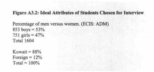 "I'm very emotional, so the first thing I'd do is cry. Then, I'd have an outburst. I would sit with my father alone in a room, as usually arises when something arises involving the father and the daughter and the father and the son, and I'd ask him for a logical reason; and if there's no logical reason for him not letting me go, if he's hiding something. If he's hiding something, I'd try to fish it out from my mother. And if she won't tell me, I'd tell my oldest brother or oldest sister, to try to get them to ask me why he doesn't let me go. If that doesn't work, I'd just cry and be angry, and I would speak to him. In the end, it all comes down to my father, and if he doesn't let me go, I'd, like, get him back. I'd, like, do something go bad, like if he doesn't let me go to America and makes me stay in Kuwait, I'd do bad in class." {3}