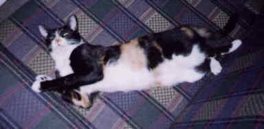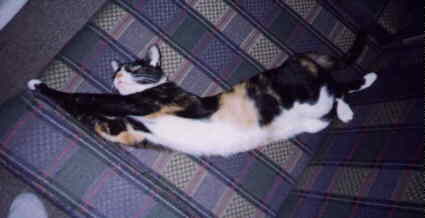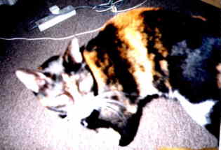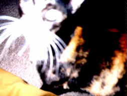 Now some people did spend more time on me than others. A lot of them fed me. In fact, I couldn't possibly eat all the food given to me, but I wouldn't let other cats get a share of anything left near "my" building. One man in particular, though, used to spend time petting me and letting me sit in his lap (which I love to do) even though a lot of other people kicked me and acted as though I had diseases (which I probably had). He would pass by my building, and I would cry my most dramatic cry. He would then say: