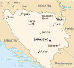 Bosnia and Herzegovina (44 00N, 18 00 E) is located in Southeastern Europe, bordering the Adriatic Sea. Bosnia borders Croatia (North-Northwest), Montenegro, (Southeast) and Serbia (East). The total area of Bosnia and Herzegovina is 51,129 sq km. Land Area is 51,129 sq km, while water Area is 20 sq km. Bosnia and Herzogovina’s terrain is mostly mountains and valleys. The climate is hot summers and cold winters. Areas of high elevation have short, cool summers and long, severe winters, mild, rainy winters along the coast. The country is divided into a joint Bosniak/Croat Federation (about 51% of the territory) and the Bosnian Serb-led Republika Srpska (about 49% of the territory).