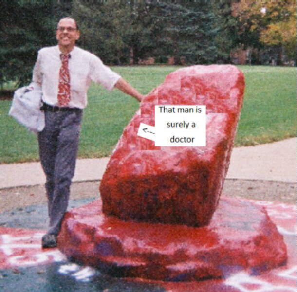 I am with the rock. Note the observatory, used now for the Honors Program.